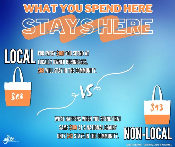 Local gift card programs encourage community members to shop locally. They drive foot traffic to downtowns and Main Streets and put small businesses in the forefront. This is important because when funds are spent locally, they stay local- for $100 you spend at locally owned businesses, $68 will stay in the community while only $43 stay in the community when you spend $100 at a national chain. Small businesses also help create jobs and have been known to play a significant role in supporting local charities and causes. Finally, local businesses make our towns and cities unique and attract tourists and visitors.